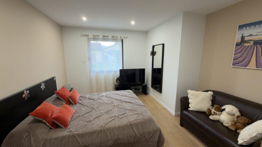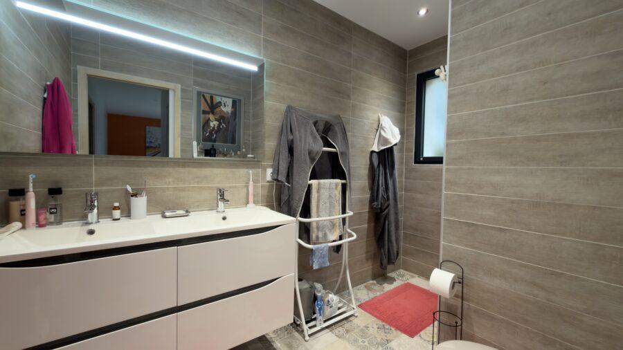 Côté confort, elle dispose d’un chauffage au sol par pompe à chaleur et d’une climatisation réversible.