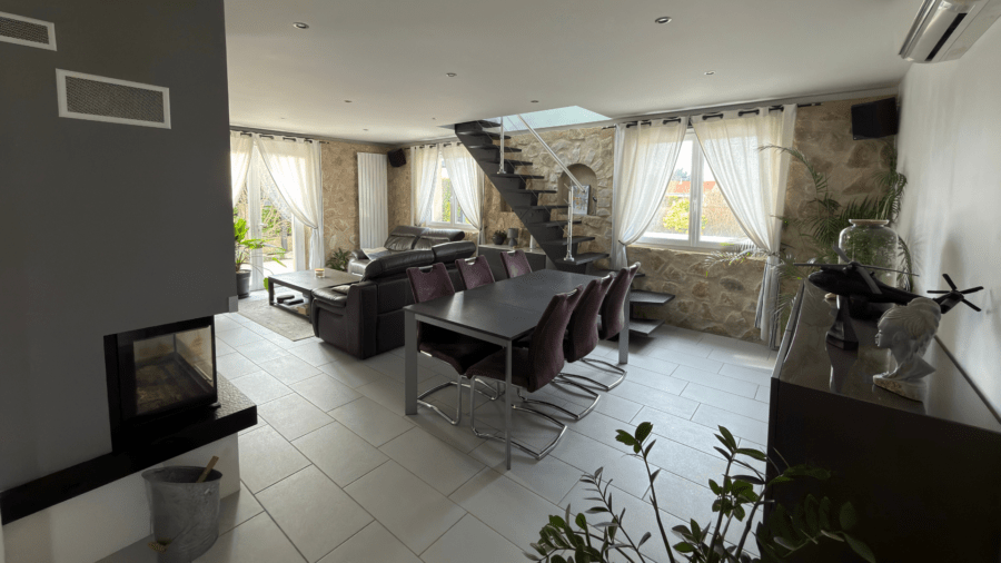 Avec ses 4 chambres dont une suite parentale à l’étage, une salle de bain avec baignoire au rdc, un grand séjour lumineux de 35 m².
