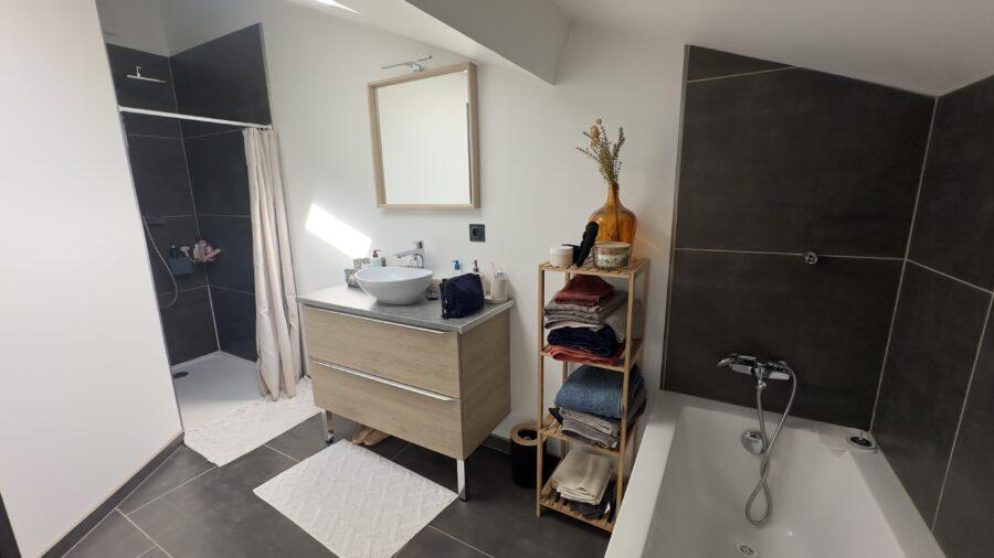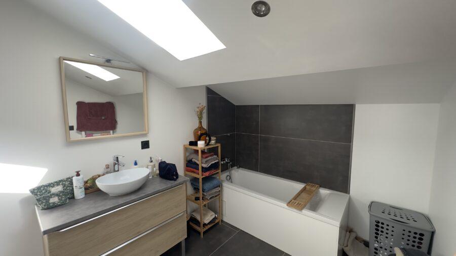 Ses atouts : Une grande pièce de vie traversante avec cuisine équipée et aménagée. 3 chambres à l’étage dont une avec dressing. Une salle de bain moderne avec baignoire et douche à l’italienne. Chauffage/climatisation réversibledans la pièce de vie et chaque chambre. Velux électriques avec capteurs de pluie.
